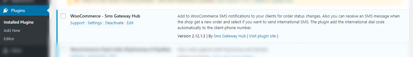 - Click "SMS Notifications" link , you see "woocommerce-sms-gateway-hub" plugin setting.